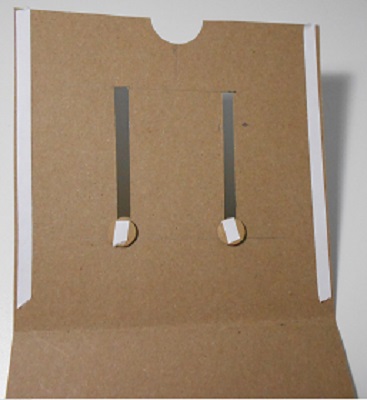 We hebben aan de achterkant het lintje er tussen gedaan. Bij het klepje aan de voorkant zitten kleine magneetjes